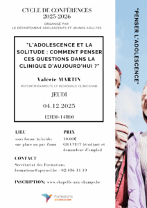 Conférence : » L’adolescence et la solitude : comment penser ces questions dans la clinique d’aujourd’hui ? » Valérie Martin